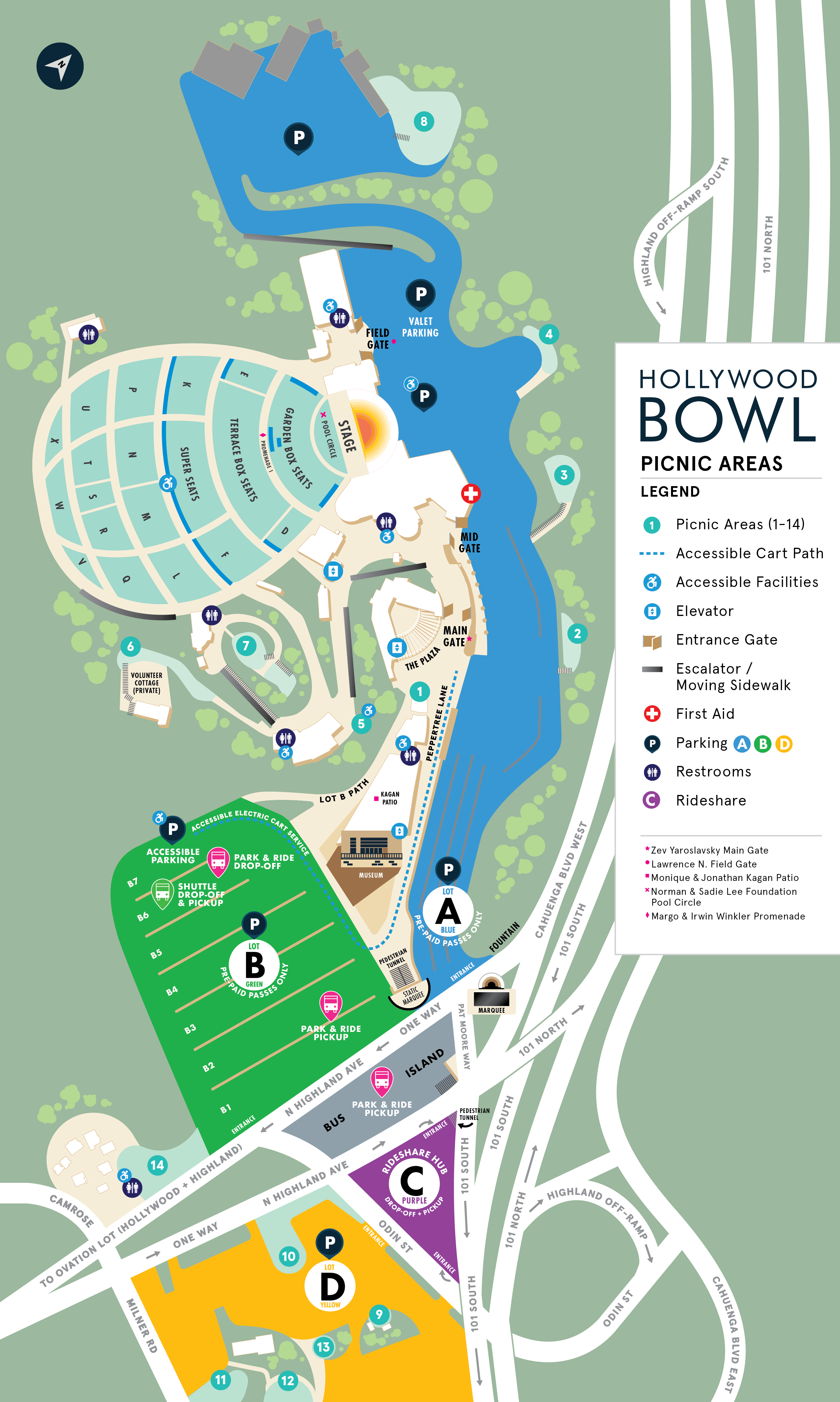 All 14 picnic areas are available to name through a donation to the LA Phil. In recognition of a generous gift, a picnic area will be named in your honor for a term of 10 years from the date of signage installation. Learn more.